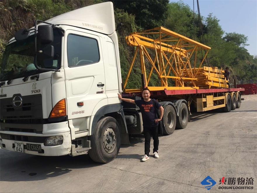 從四川運輸工地吊車平臺,四川本地提貨,一單12車,到深圳換香港平板車。卸貨,裝貨送香港工地.